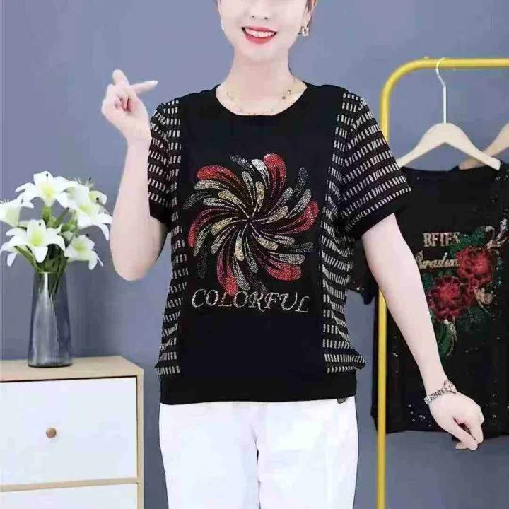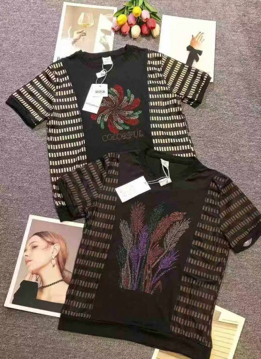时尚洋气烫钻圆领宽松遮肉短袖,[爱心]460件左右,码数M-4XL,穿80-150斤,万佳档口货,原包装️无瑕疵,[666]实体店品质,分货加一
