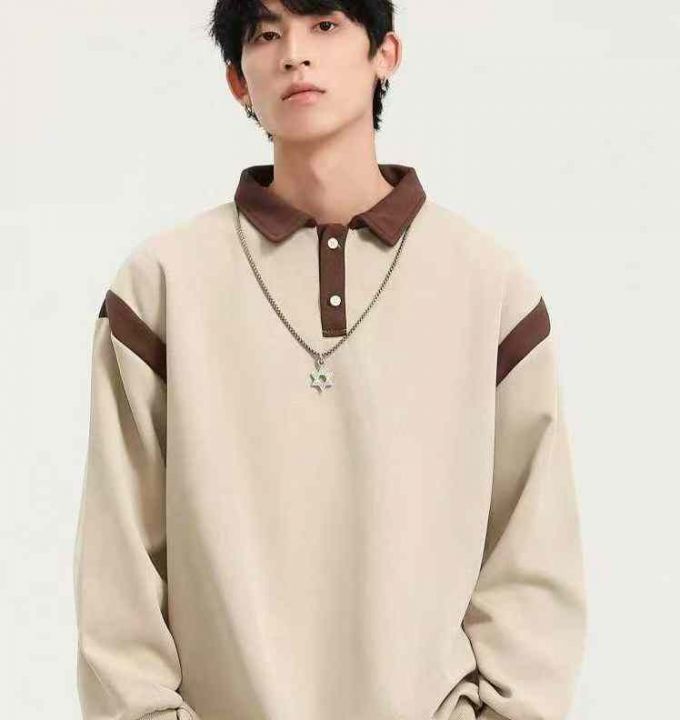 polo领大板落肩痞帅宽松棉质鱼鳞布卫衣,后领包边,290件,1-4码,版型宽松够大,独立包装,全清6.8元,分货+1