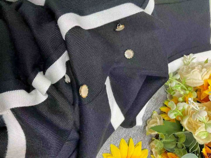 夏季新款时尚设计感拼色猫咪提花宽松慵懒风显瘦落肩针织小衫,独立包装,均...