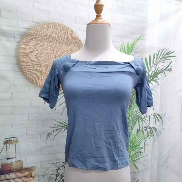 4.5元秒杀[爱心][爱心] 法式方领短袖女露锁骨内搭体...