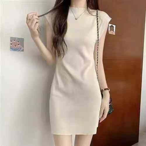 ️全清4.9 夏季女装圆领纯色无袖针织连衣裙,韩版修身显瘦针织连衣裙,一共149件