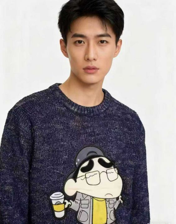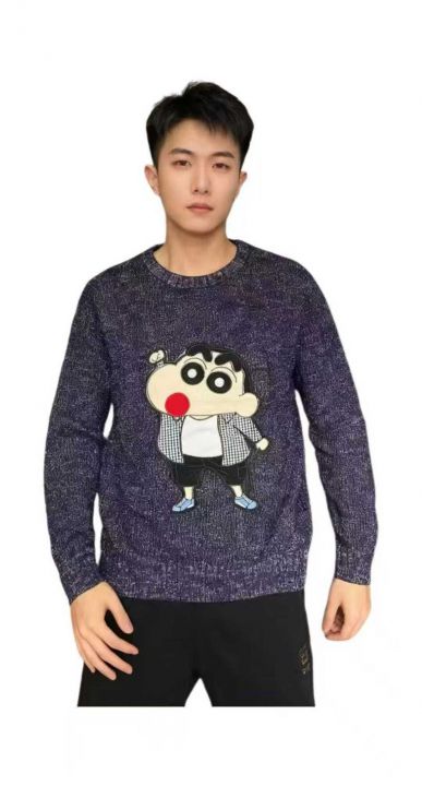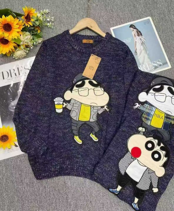 秋冬新款男女同款网红爆款卡通慵懒风蜡笔小新特种沙圆领套头毛衣,独立包装带吊牌,码数L--3XL码,450件,全清8.9元超低价秒杀!分货加一!