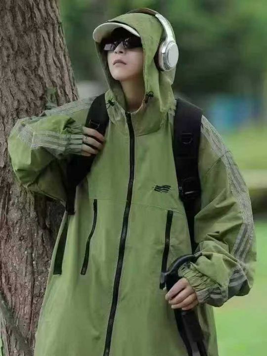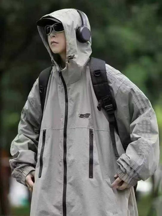 潮牌宽松男女同款冲锋衣双层连帽带反光条夹克外套.单...