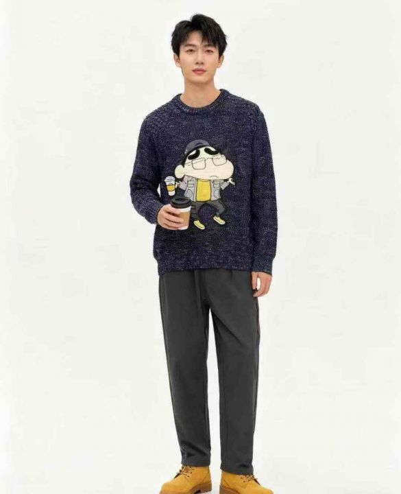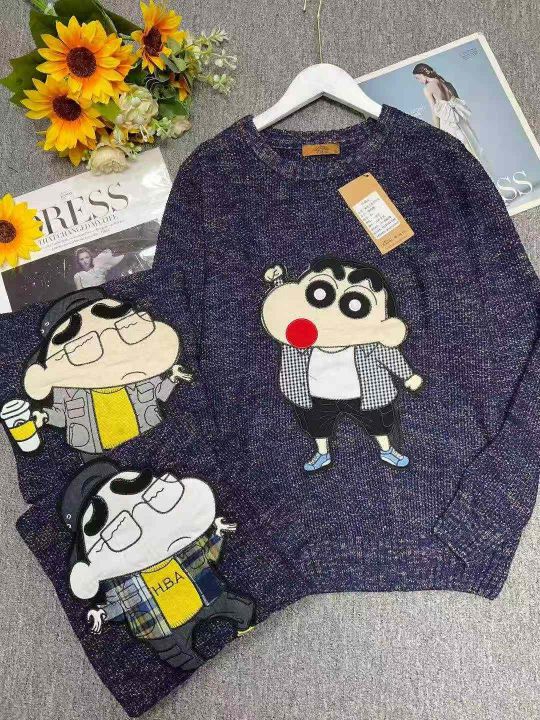 秋冬新款男女同款网红爆款卡通慵懒风蜡笔小新特种沙圆领套头毛衣,独立包装带吊牌,码数L--3XL码,450件,全清8.9元超低价秒杀!分货加一!