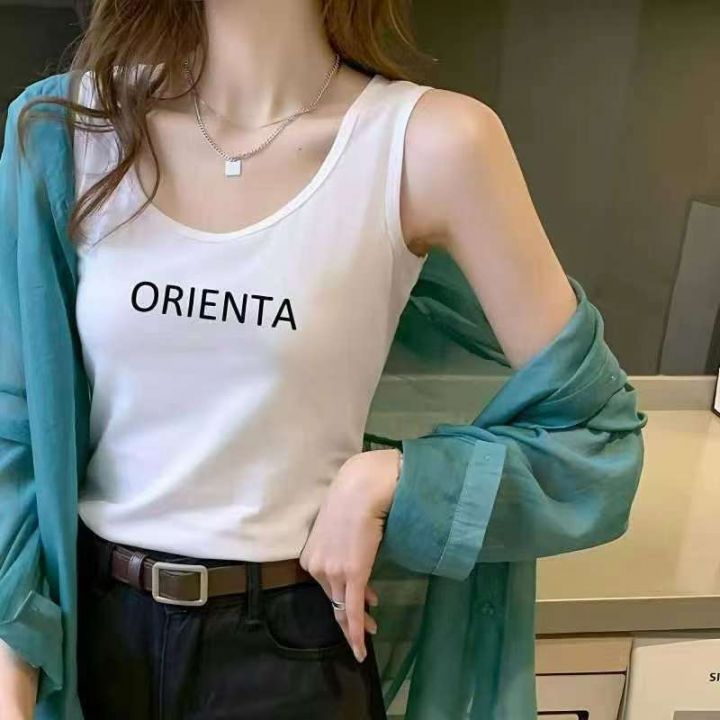 纯色字母内撘吊带背心女外穿2025夏季新款修身无袖打底...