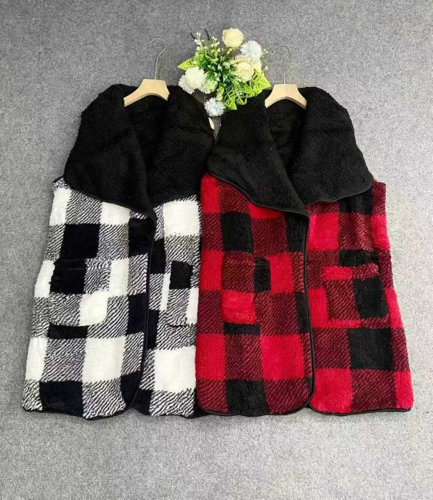 424件大翻领格纹毛绒马甲外套。面料柔软舒适又保暖,品质好。S一5XL,独立外袋十真空包装。全清8.9