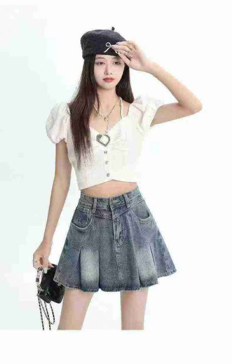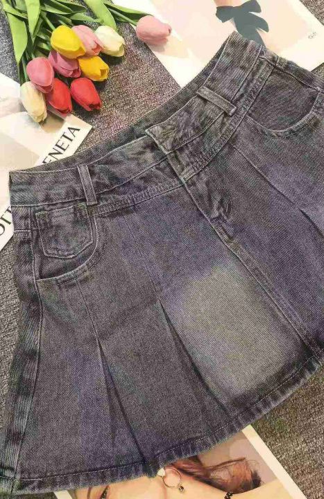复古高腰百褶A字牛仔半身短裙,[爱心]135件左右,码数S-XL,穿80-130斤,万佳档口货,原包装️无瑕疵,[666]实体店品质,分货加一