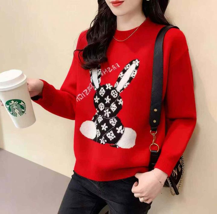 秋冬新款网红提花卡通套头毛衣,独立包装,均码面料软...