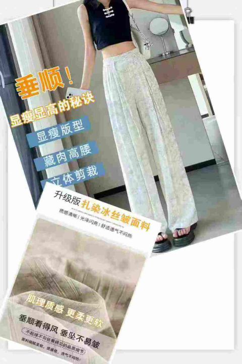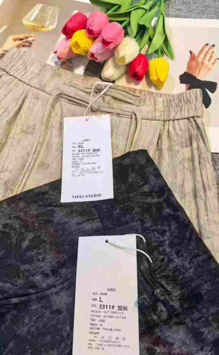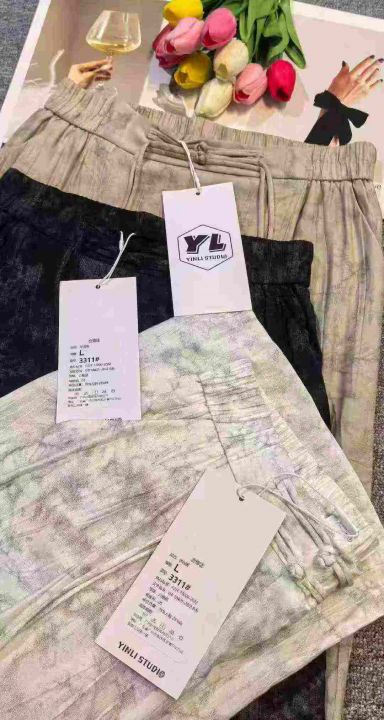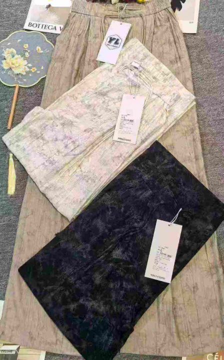 新中式国风水墨画扎染盘扣显瘦阔腿裤,[爱心]腰部包边,三种裤型,[666]2000件左右,尺码S-XXL,可穿80-150斤,工厂货无瑕疵,[勾引]分货加一