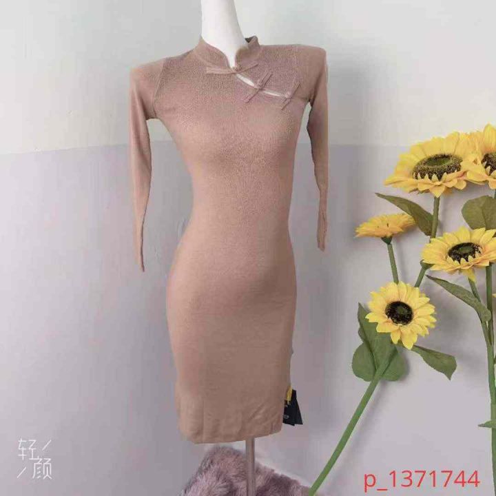 新中式国风盘扣旗袍毛衣连衣裙,女包臀开叉长裙,码数...