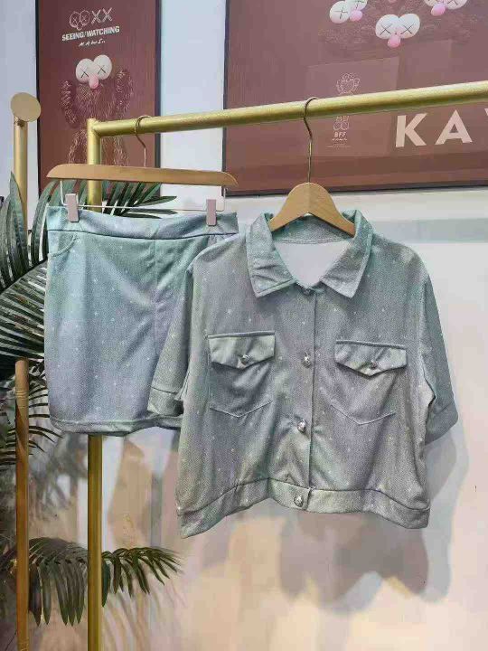 1270套时尚靓妹女装夏季休闲套装裤裙 上衣纽扣解 半松紧腰裤裙有口袋,单款单色 码数2-6码(M-3XL)独立包装。