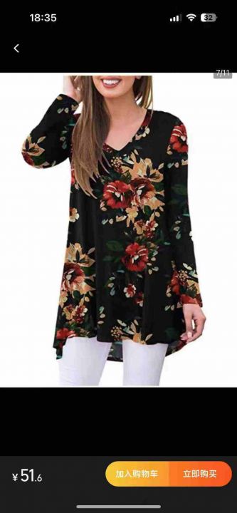 100件左右欧美大码印花圆领长袖T恤休闲飘逸,面料柔软...
