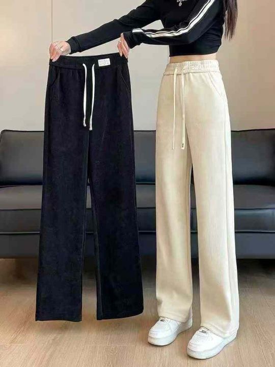 雪尼尔阔腿裤子女高腰垂感长裤直筒休闲宽松,独立包装...
