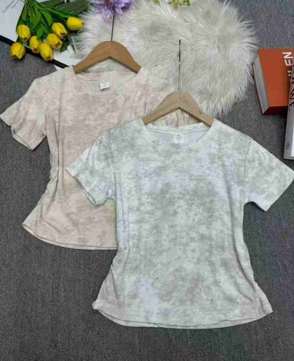 全清价6.5美式烫钻亮片闪闪扎染收腰短袖短款上衣辣妹T,十件一包,弹力大,...