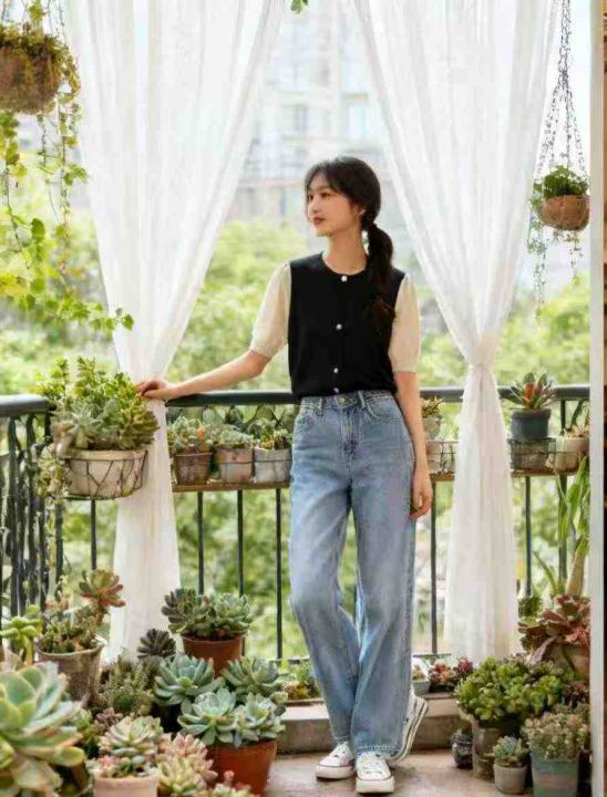 夏季新款时尚设计感拼色猫咪提花宽松慵懒风显瘦落肩针织小衫,独立包装,均...