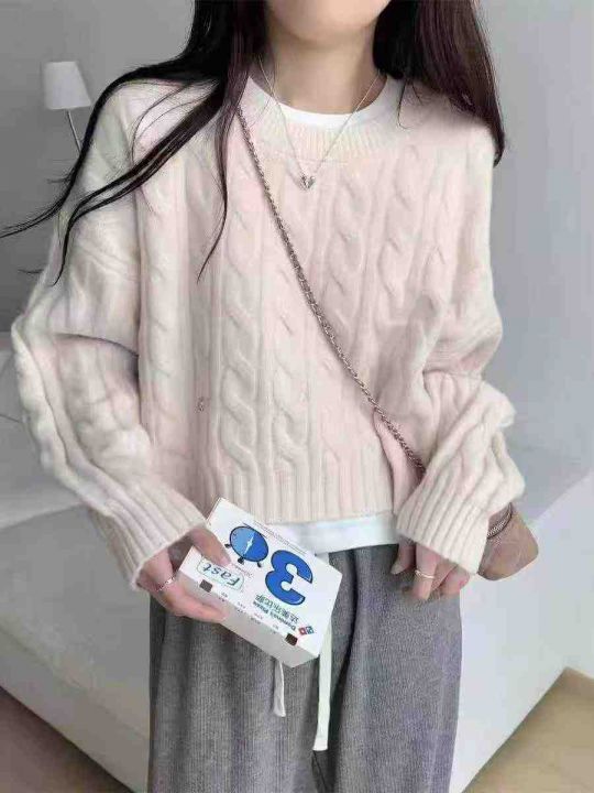 秋冬新款韩版麻花简约慵懒风短款别致包芯纱圆领套头毛衣,独立包装,均码面料软糯厚实,69件,全清6.9元超低价秒杀!