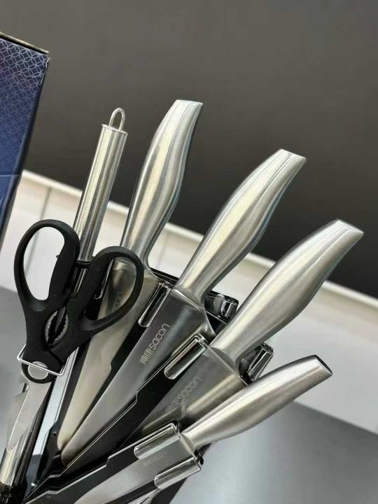 全新未拆封,3Cr13mov不锈钢材质,刀身加厚更耐用。套装包含菜刀、水果刀、剪刀等,适合家庭厨房使用。2000 套,一箱 12 套
