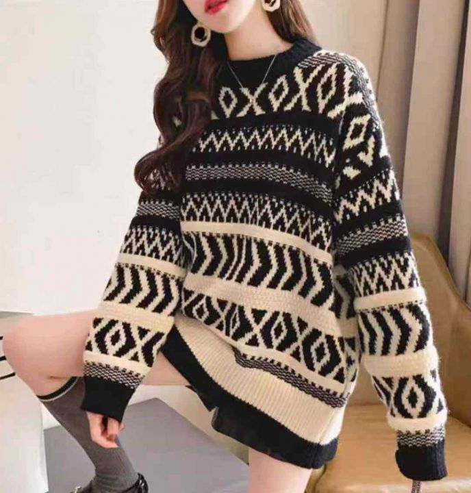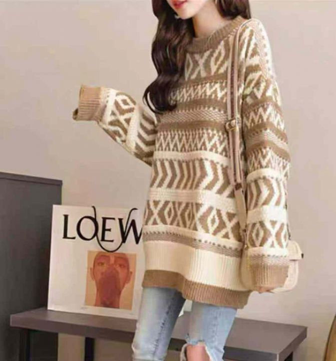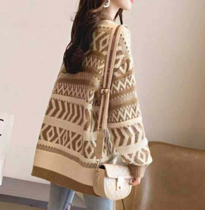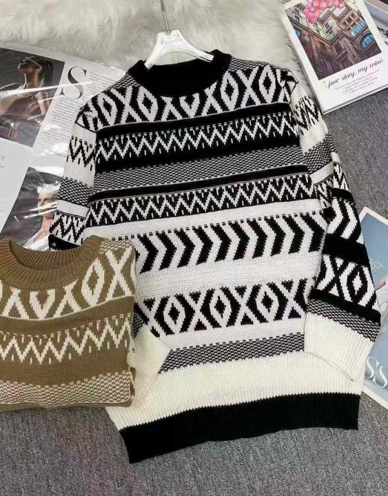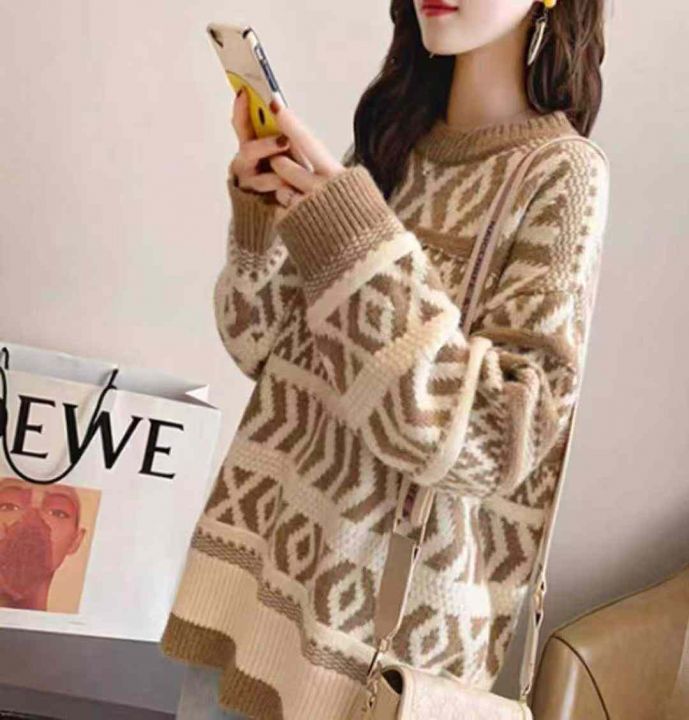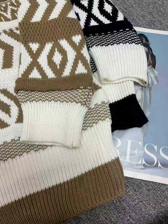 秋冬新款宽松慵懒风提花包芯纱套头毛衣,独立包装,均...