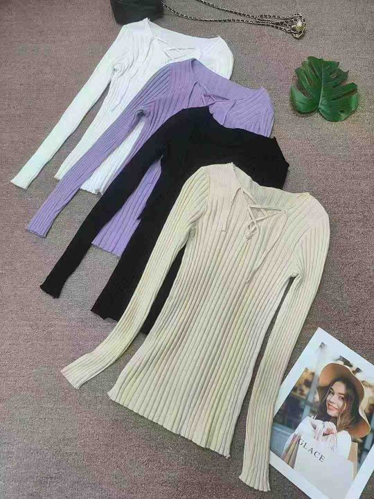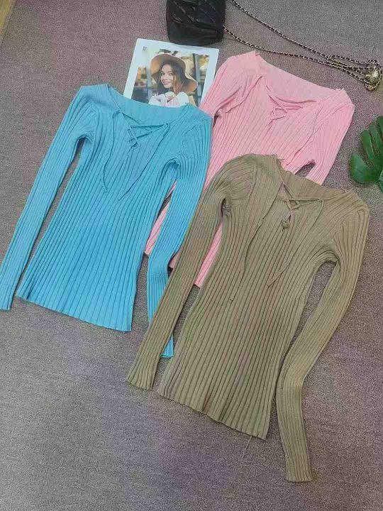 包芯纱V领交叉系带纯欲辣妹针织衫打底外穿上衣,独立包装,均码,260件,清7.5,分+1