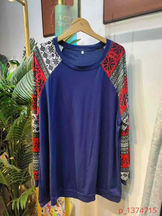 120件左右欧美新款撞色拼接长袖T恤女2025春秋薄款时尚百搭圆领套头上衣女,实物款色,码数XL 3XL 5XL,独立包装。 _@_@