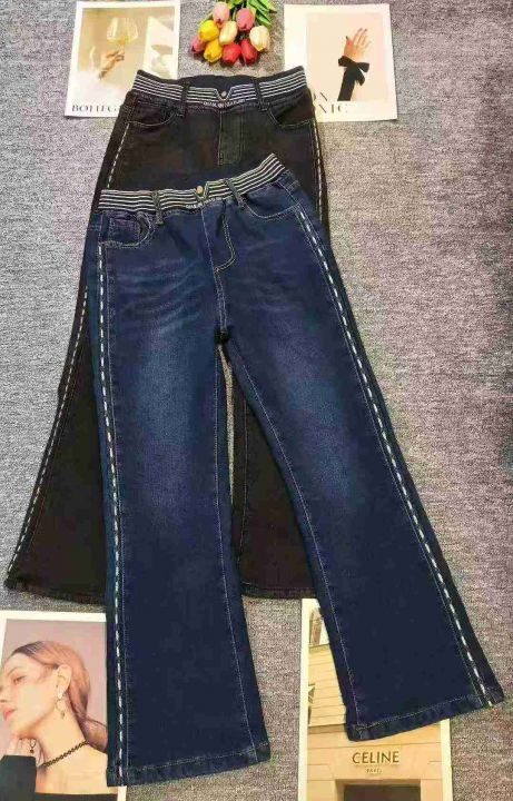 高腰弹力显瘦微喇叭牛仔长裤,[爱心]40件左右,烟灰色为主,码数28-34,穿80-140斤,工厂原包原吊无瑕疵