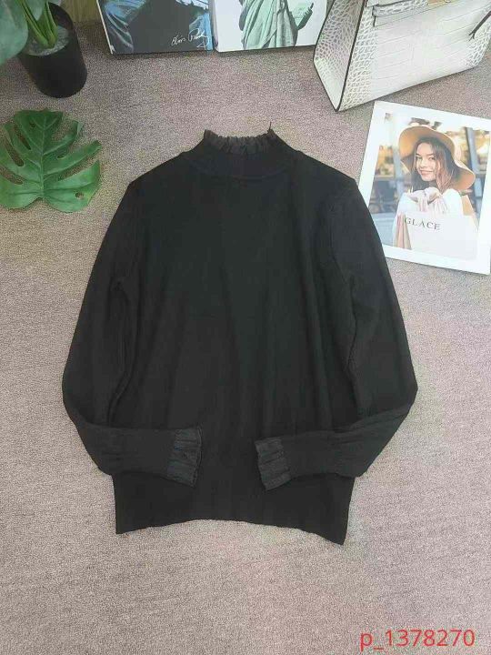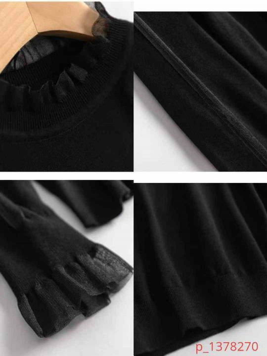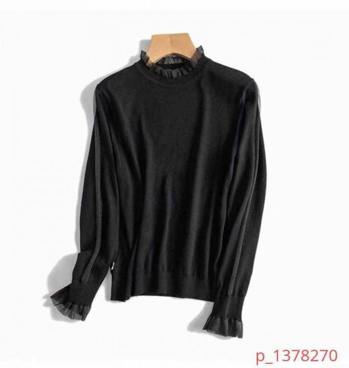 包芯纱气质花边针织衫长袖木耳领打底衫简约百搭上衣,独立包装,均码,160件,清7.5,分➕1 _@_@