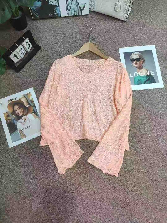 别致镂空短款早春秋宽松针织毛衣上衣,独立包装,均码,260件,清6.5,分➕1