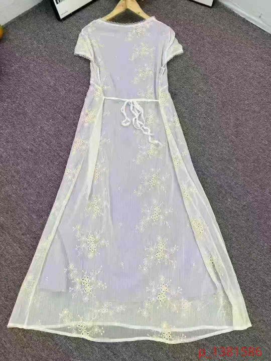 4600件高品质盛夏气质收腰显瘦修身长款连衣裙,工艺绣花,单款单色,独立包装,码数M-L。 _@_@