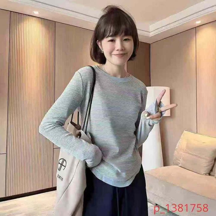 两个整款 颜色色系百搭 条纹控简直爱了 每个颜色都是自留款[色] 外穿打底都可以 拼接款洋气漂亮 直播 卖场 实体店都可以入手