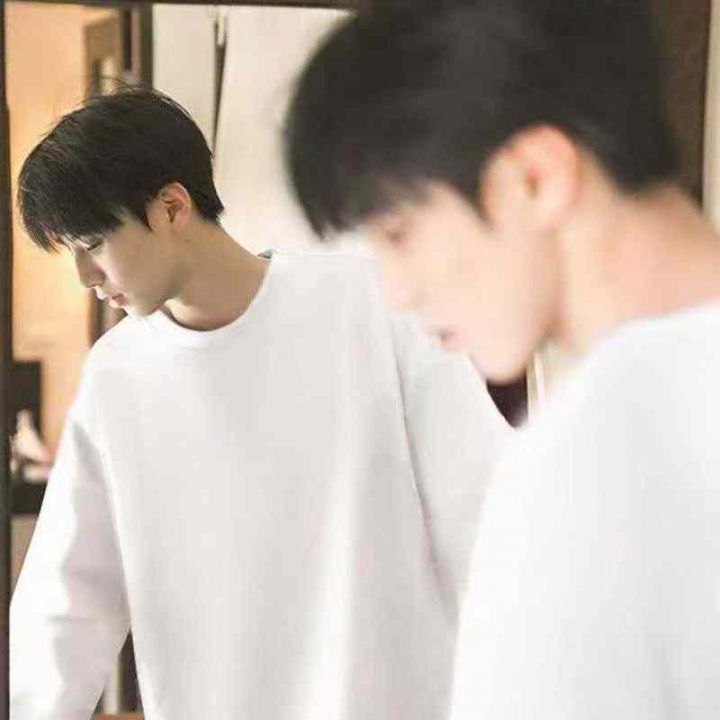[啤酒]男士纯棉重磅纯色长袖T恤宽松青少年潮休闲美式...