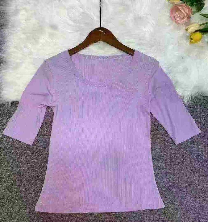 夏季新款五分袖U领螺纹t恤百搭修身显瘦时尚中袖打底衫994件,独立包装,货品干净整洁,全清福利价6.9元,