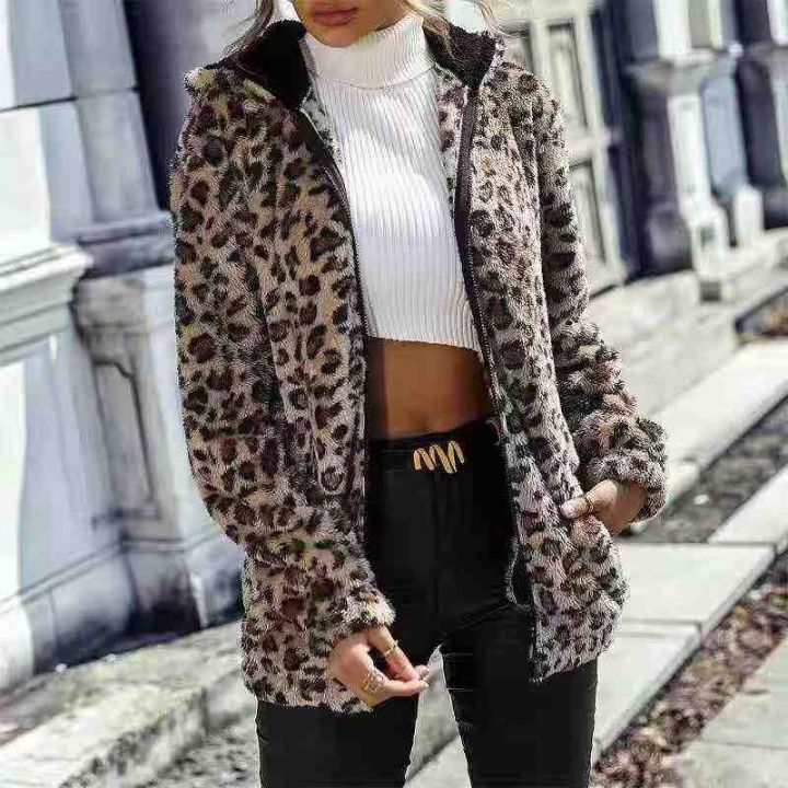 40件时尚豹纹连帽拉链开衫毛绒外套。图片款,面料柔软...