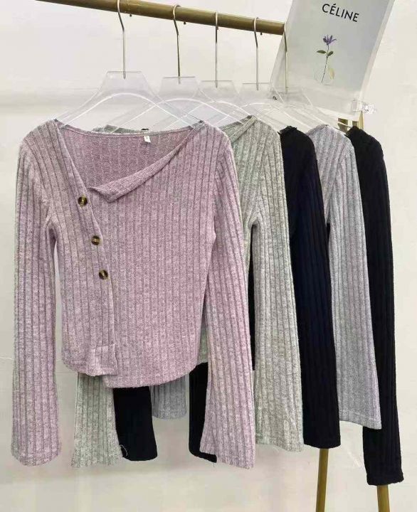 坑条打底针织447件7.5,面料软糯舒适,显瘦斜领口,下...