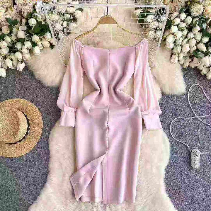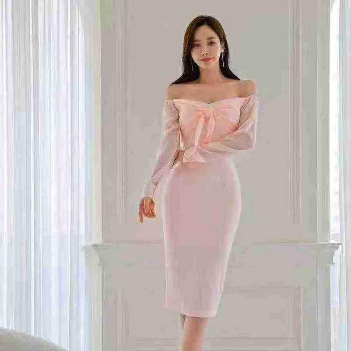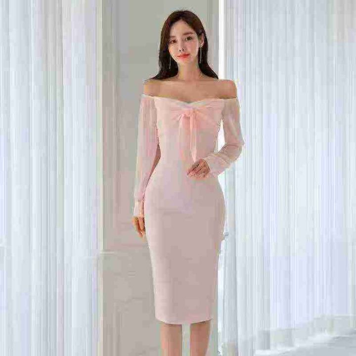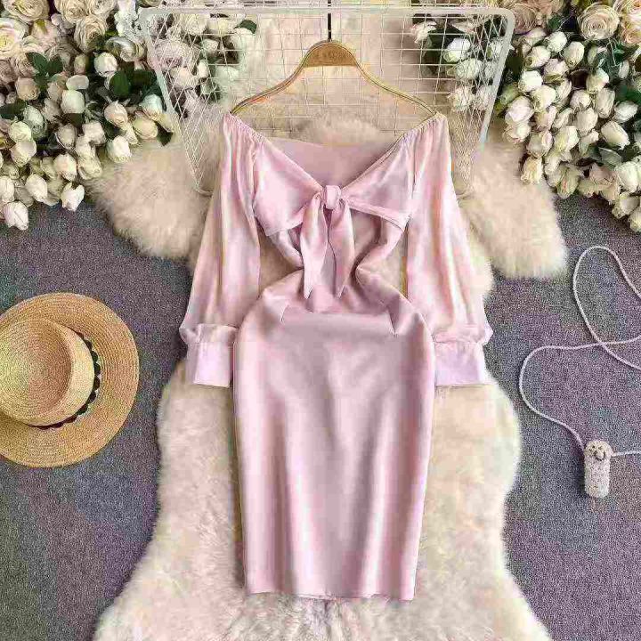 ☕️韩版女装甜美蝴蝶结雪纺泡泡袖拼接气质方领修身中长款连衣裙女春150件全清13.8元,码数S到XL,正品独立包装,高品质单款粉色~