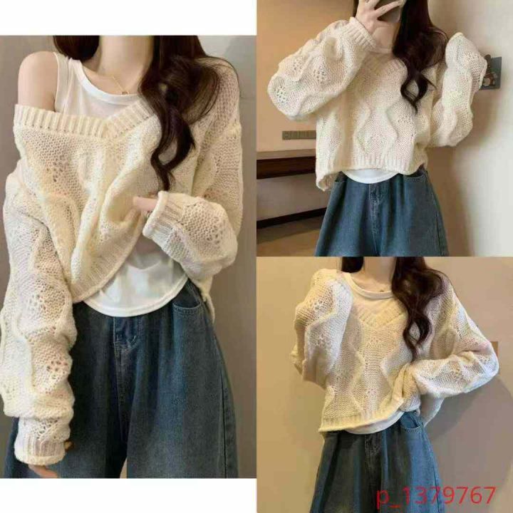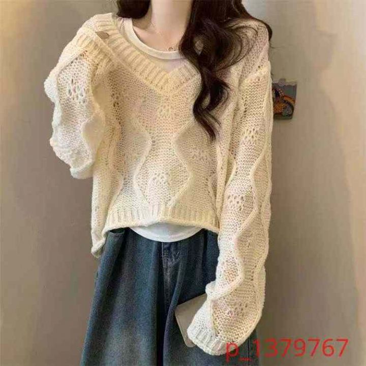 别致镂空短款早春秋宽松针织毛衣上衣,独立包装,均码,260件,清6.5,分➕1 _@_@
