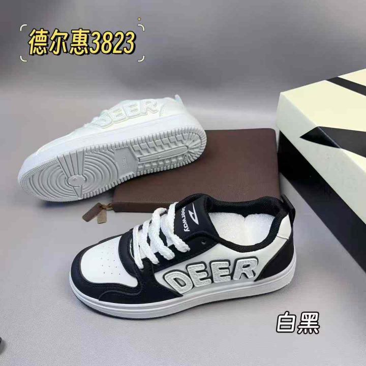 【德尔惠3823】新款双色底超纤板鞋白色200双/米色280/...