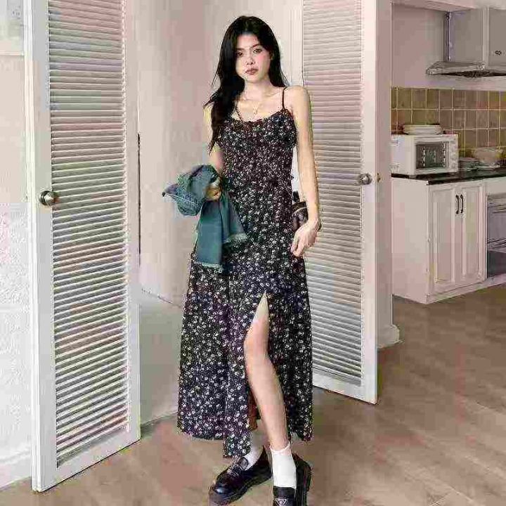 法式茶歇收腰开叉吊带连衣裙,[爱心]90件左右,码数S-XL,穿80-130斤,万佳档口货,原包装️无瑕疵
