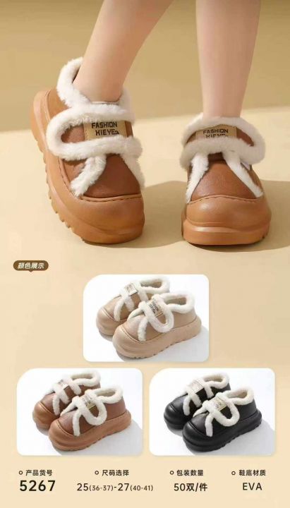 货号:5267新款PU防水皮棉雪地靴,松糕厚底+魔术贴,高颜值韩版,混色混码装3...