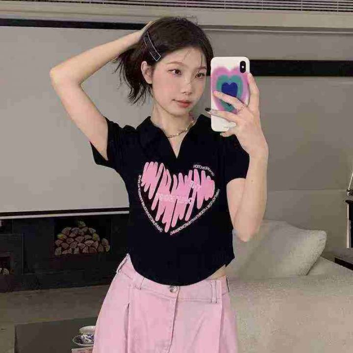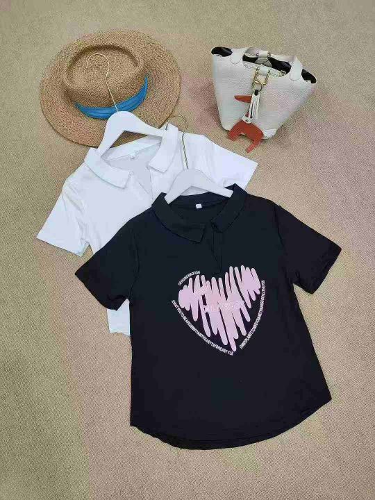 [月亮]:5.5清464件[月亮]:Polo领正肩深V辣妹短袖T恤...