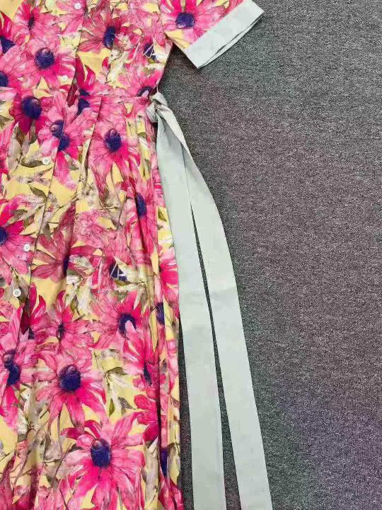 网红碎花连衣裙女夏季新款高端气质遮肚显瘦高级感长裙子120条全清13.8元,码数S到XL,独立包装。全部配腰带~