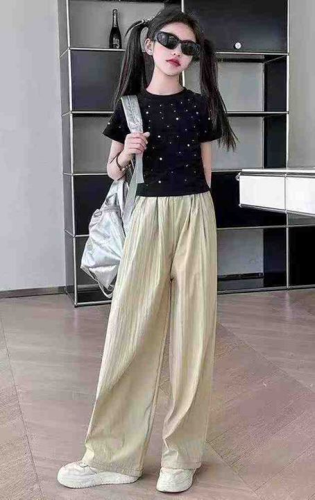 天猫在售款130件左右高品质中大童夏季薄款直筒阔腿山本裤,单款三色,码数130-140,独立包装带吊牌