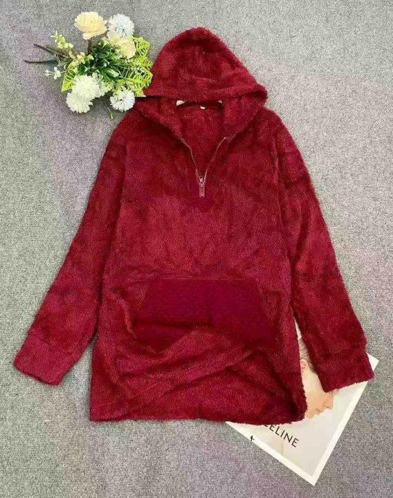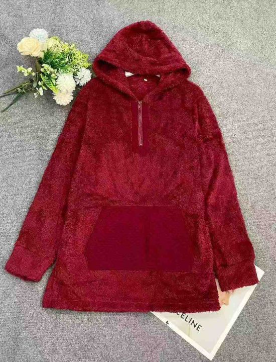 34件中长款连帽加绒卫衣。前面拉链设计,面料柔软舒适...