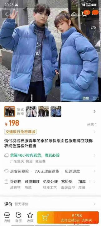 男女同款冬季加厚保暖面包服潮牌立领棉衣纯色宽松外套...