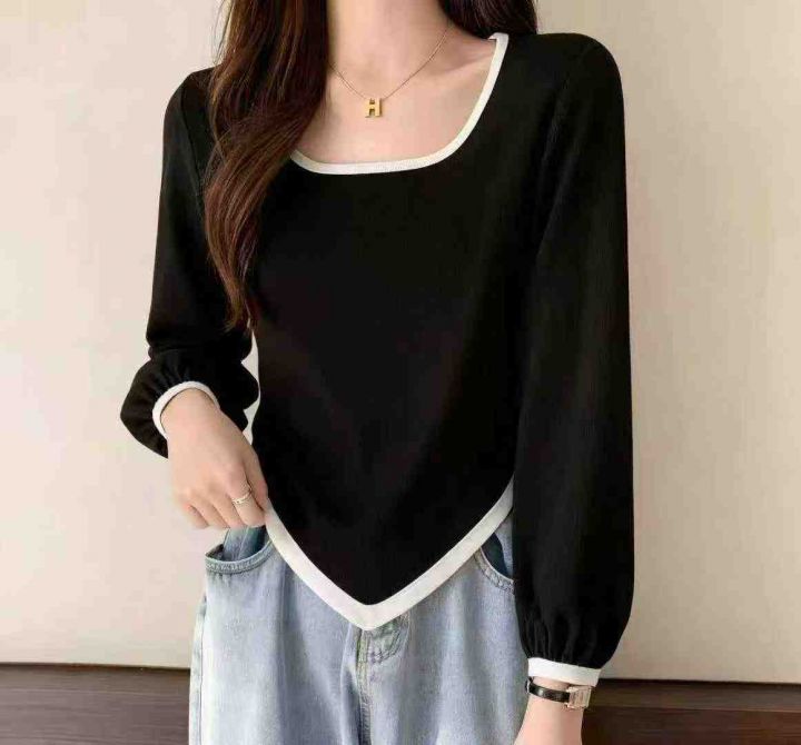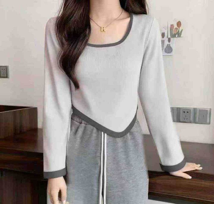 秋冬新款撞色高腰设计不规则纯欲风短款针织套头毛衣,...