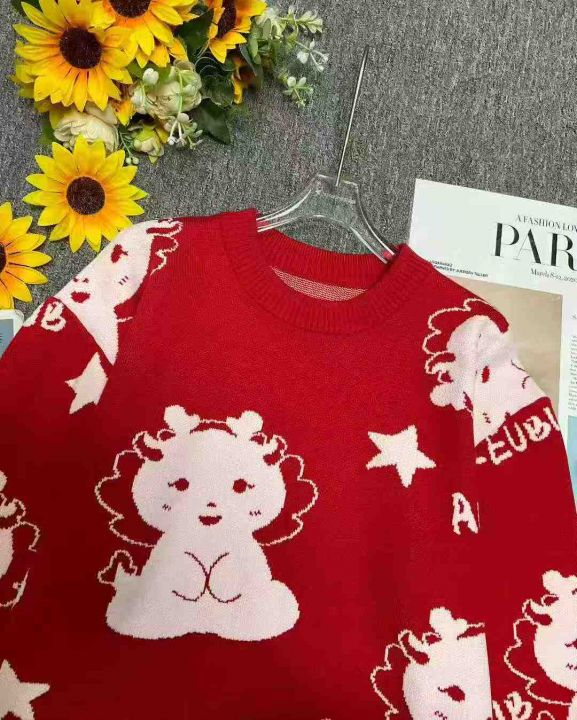 秋冬新款男女同款复古本命年红色提花包芯纱圆领套头毛衣,独立包装带吊牌,码数M--2XL码,213件,全清9.9元超低价秒杀!分货加一!