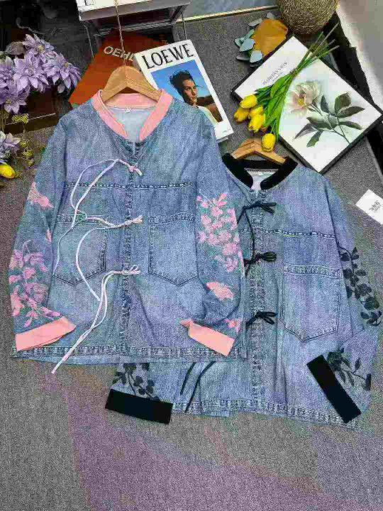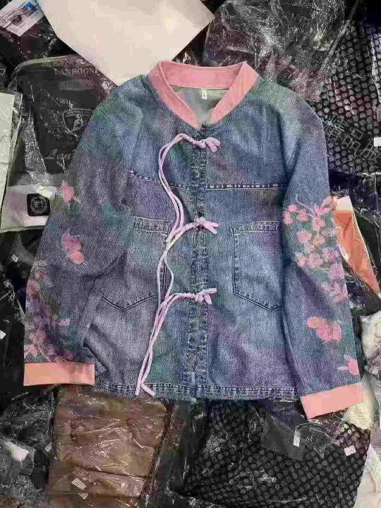 新中式国风假牛仔宽松洋气百搭盘扣上衣,独立包装,颜色图一为主,码数,数量108件,不分货,(货号920#67)