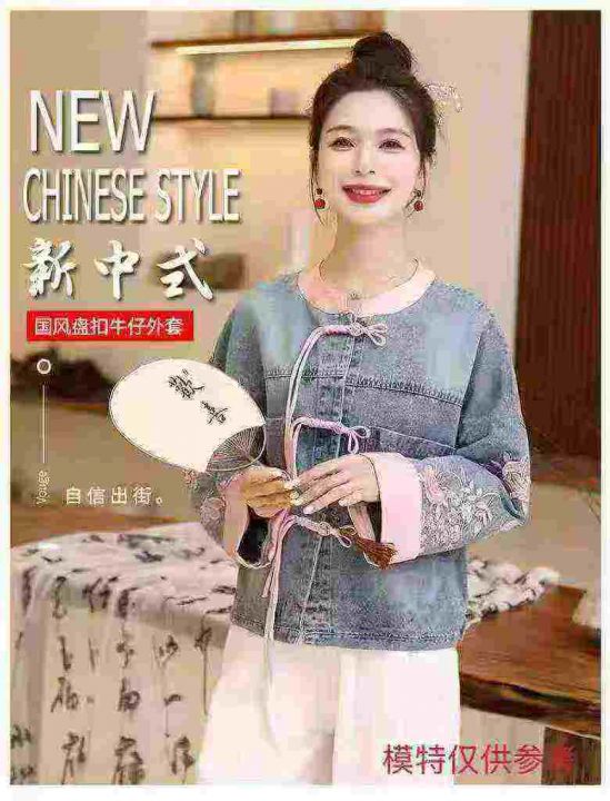 全清价7.8元新中式国风假牛仔宽松洋气百搭盘扣上衣,...