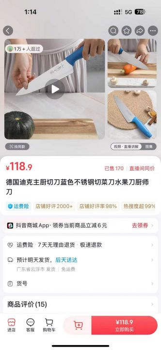 外贸品牌厨师刀,原箱原件!质量超好!几块钱!...