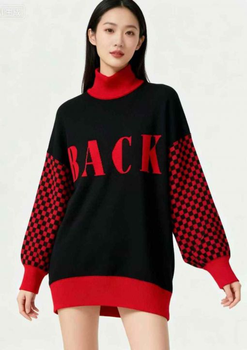 秋冬新款大版宽松慵懒风高领提花加厚款套头毛衣,独立...