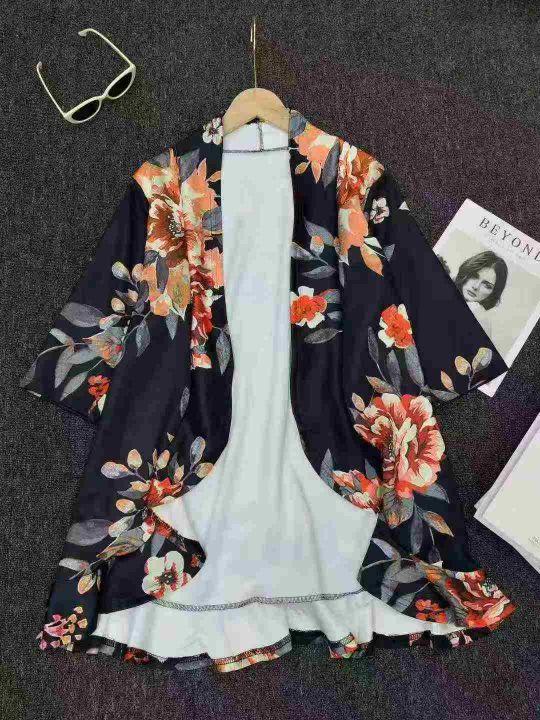 宽松外搭披肩薄款长袖,半袖外套印花开衫,独立包装,180件,S- X L,全清4.8